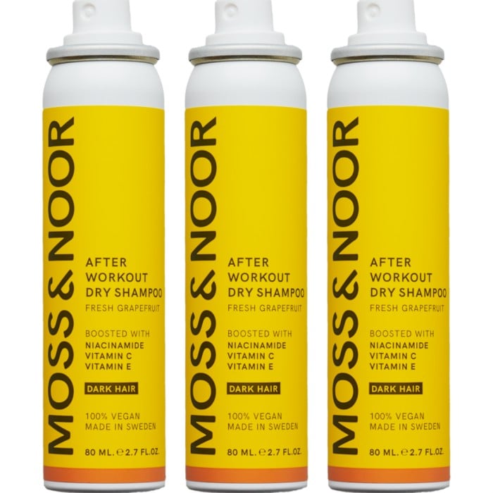 After Workout Dry Shampoo Dark Hair är ett torrschampo speciellt utvecklat för svettigt hår och hårbotten. Moss & Noor torrschampo är framtaget för att användas efter träningen.