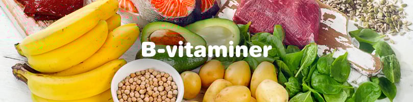 B-vitaminerna är en familj av åtta vattenlösliga vitaminer som från början troddes vara ett och samma ämne. Tillsammans kallas de B-vitaminkomplexet. Vi får i oss B-vitaminerna från många olika typer av livsmedel, men du hittar dem även i form av kosttillskott på apotek. Tillskotten finns i olika beredningsformer för att passa alla: tabletter, kapslar, droppar, spray och sugtabletter.