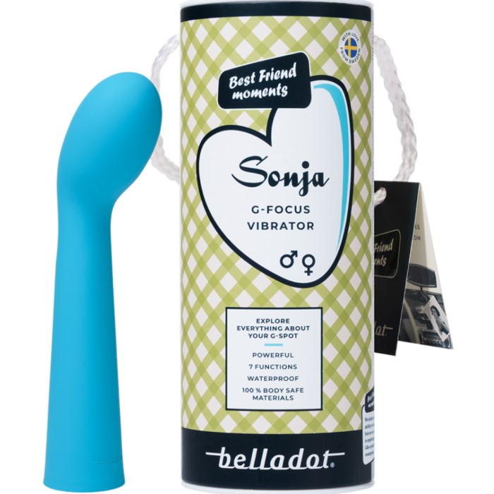 Belladot Sonja är en vibrator för intensiv och riktad stimulans av g-punkten. Det långa handtaget med det äggformade huvudet är noga utformat för precision och kontroll. Med sju olika vibrationsprogram kan du enkelt hitta det läge som ger dig mest njutning.