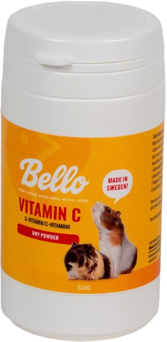 Bello C-vitaminpulver Small Animals kan ge marsvin det extra stöd de kan behöva. Vitaminpulvret kan användas för att säkerställa att de får i sig C-vitamin eftersom marsvin inte kan producera det på egen hand utan behöver få i sig via fodret. Pulvret blandas i vatten eller strös över grönsaker. Undvik att ge dagligen.