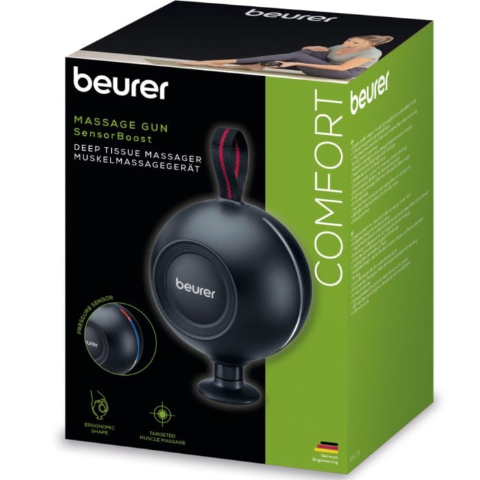 Beurer MG 101 SensorBoost Massage Gun är en kompakt och ergonomiskt utformad enhet som passar för hemmabruk, resor eller träning. MG 101 har en integrerad trycksensor som hjälper dig att definiera den optimala intensiteten för varje område av din kropp, vilket säkerställer en personlig och effektiv massageupplevelse.