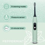 - Inbyggd trycksensor som varnar vid för hårt tryck för att skydda tänder och tandkött
