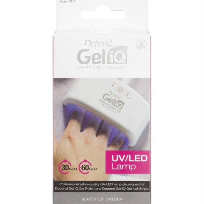 Depend Gel iQ Mini Led Lamp + Adapter är en professionell UV/LED-lampa med salongskvalitet utvecklad för användning med Depend Gel iQ Gel Polish och Depend Gel iQ Gel Nail Strips.