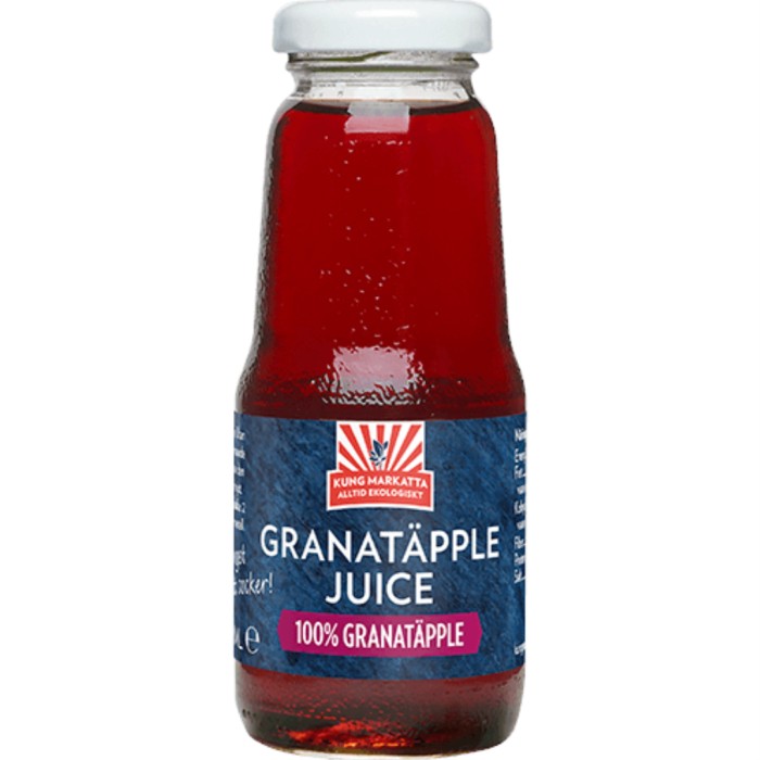 Kung Markatta Granatäppeljuice är frisk och fräsch i smaken samt naturligt rik på vitaminer och antioxidanter. Tack vare dess egenskaper kallas granatäpple ofta för superfrukt.