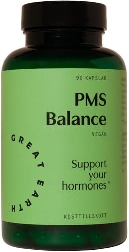 Great Earth PMS Balance är ett kosttillskott som innehåller nattljusolja, salvia, vitamin B6, samt Dong Quai som även kallas för "kvinnlig ginseng". PMS Balance innehåller även krom som bidrar till att bibehålla normala blodsockernivåer. Vitamin B6 bidrar till att reglera hormonaktiviteten.