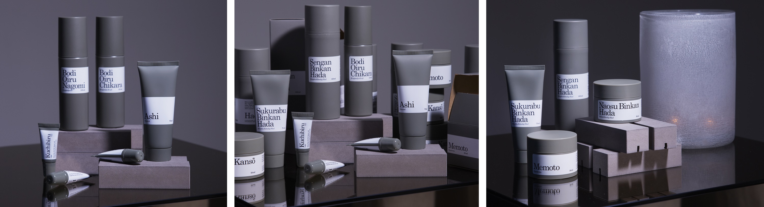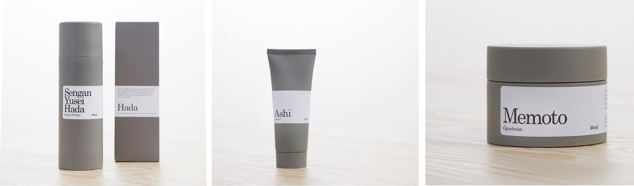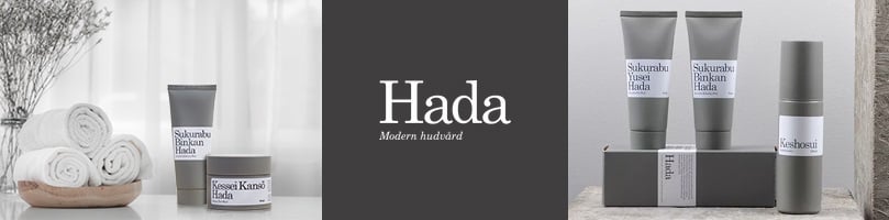 Seriens japanska namn Hada betyder hud på japanska. Innehållet går att spåra både i den svenska och japanska naturen, ett växtextrakt framtaget av lotus, bambu och näckros som finns genomgående i 13 av seriens 16 referenser. Hadas design för tankarna till den svenska naturen och det japanska uttrycket i färg och form. Förpackningarna är airless för att eliminera konserveringsmedel så långt det går, vissa är även eco-certifierade. Kartongerna är gjorda av återvunnet papper. Funktion, hållbarhet och kvalitet går hand i hand.