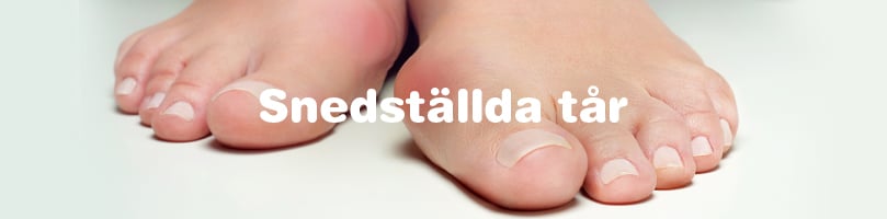Våra tår kan med tiden bli lite sneda och krokiga. Hos en del blir de så pass snedställda att man får besvär med skav, förhårdnader och smärta. Här beskriver vi de vanligaste formerna av snedställda tår och vad man kan göra åt problemet.