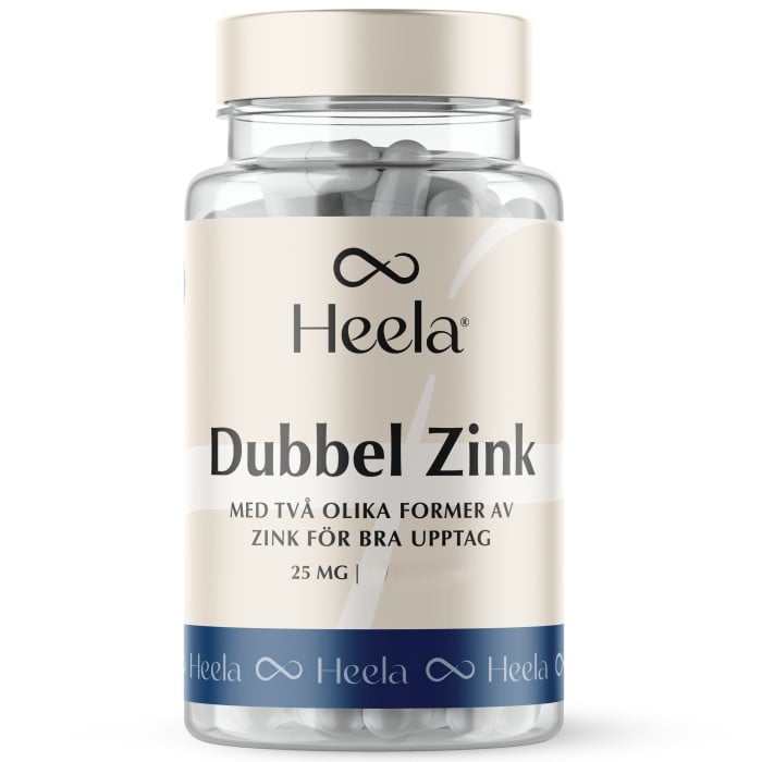 Heela Dubbel Zink är ett kosttillskott som förenar två utvalda former av zink – zinkbisglycinat och zinkcitrat – för ett effektivt upptag. Zinkbisglycinat har en god biotillgänglighet och tolerans. Zinkcitrat är en effektiv och skonsam form av zink.