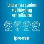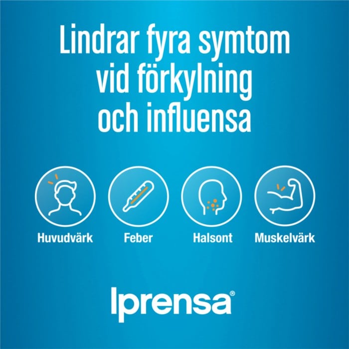 Iprensa lindrar fyra symtom vid förkylning & influensa: huvudvärk, feber, halsont & muskelvärk. Iprensa 400 milligram mjuka kapslar ger långvarig smärtlindring i upp till 8 timmar.