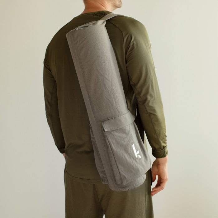 Kii Yogaväska för yogamattan är gjord av ekologisk bomull. Väskan är slitstark, bekväm och har praktiska fickor för t ex mobiltelefon och vattenflaska. Väskan har en både fin och praktisk grå nyans.