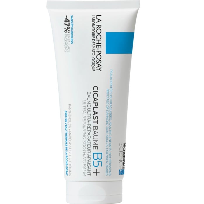 Cicaplast Balm B5+ passar både för vuxna, barn och spädbarn från 3 månader. La Roche-Posays parfymfria, mjukgörande och återuppbyggande kräm Cicaplast vårdar effektivt torr och irriterad hud. Med en formulering av madecassoside, B5-vitamin, thermalskt källvatten och tribioma, stärks din hud samtidigt som synligheten av ärr reduceras. Kan användas på kroppen, i ansiktet och på läpparna. Undvik att användas på öppna sår och området direkt runt ögonen. Appliceras på rengjord hud två gånger om dagen.