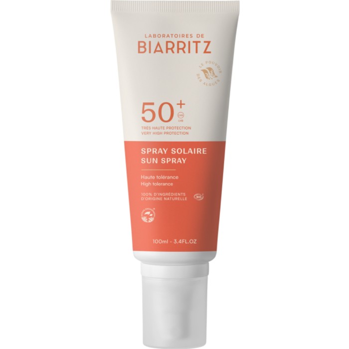 Sunscreen Spray SPF50+ från Laboratoires de Biarritz är en solskyddsspray som ger ett omedelbart skydd mot UVA/UVB-strålning tack vare mineralfilter och Alga-Gorria®, ett patenterat extrakt av röda alger från den baskiska kusten som särskilt förhindrar för tidigt åldrande av huden orsakat av solen.