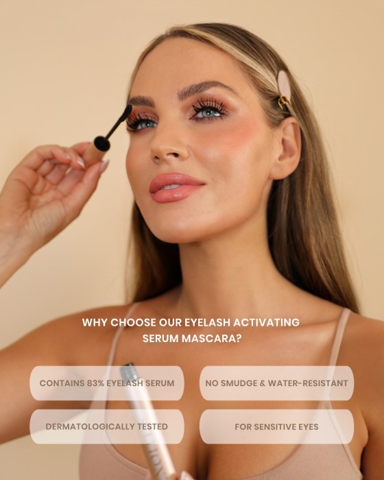 Lenoites Serum Mascara är en "Tubing Mascara", där tubing-formuleringen kapslar in varje individuell ögonfrans i tuber. Ger en kladdfri finish som varar hela dagen. Mascaran är vattenresistent och står emot vatten, svett och tårar. Är enkel att ta bort med varmt vatten som är 38°C eller varmare. Du behöver ingen tvål eller sminkrengöring, endast varmt vatten. Mascaran kommer att lossna som små "tuber" efter att de har glidit av fransarna, för en kladdfri sminkborttagning.
