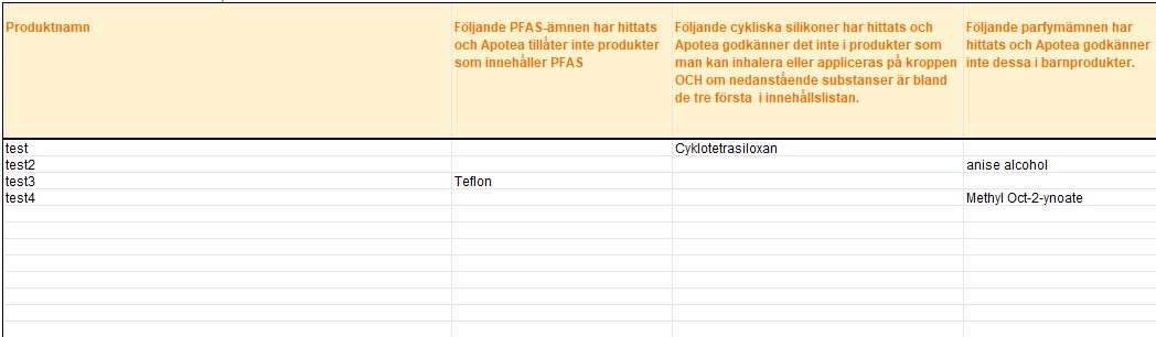 I bild 2 nedan ser du ett exempel på produkter som eventuellt innehåller ämnen som Apotea inte tillåter.