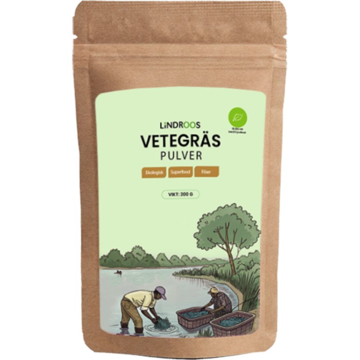 Lindroos Vetegräspulver är ett pulver gjort på ekologiskt vetegräs – ett rent, grönt pulver som innehåller antioxidanter, vitaminer (bland annat vitamin K), mineraler och klorofyll.