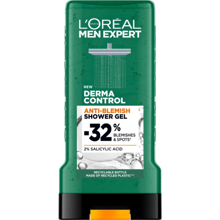 L'Oréal Paris Men Expert Derma Control Shower Gel är en effektiv duschgel för män. Formulan reducerar synligt orenheter på kroppen samtidigt som att du känner dig ren och fräsch. Duschgelen är berikad med 2% salicylsyra, som är känt för sina rengörande egenskaper, samt har en härlig doft som stannar kvar länge på kroppen.• -32% orenheter och finnar*• Uppfriskande doft• Berikad med 2% salicylsyra• Testad under dermatologisk kontroll• Fräsch känsla* På kroppen, kosmetokliniskt test, 52 män efter 1 månads användning