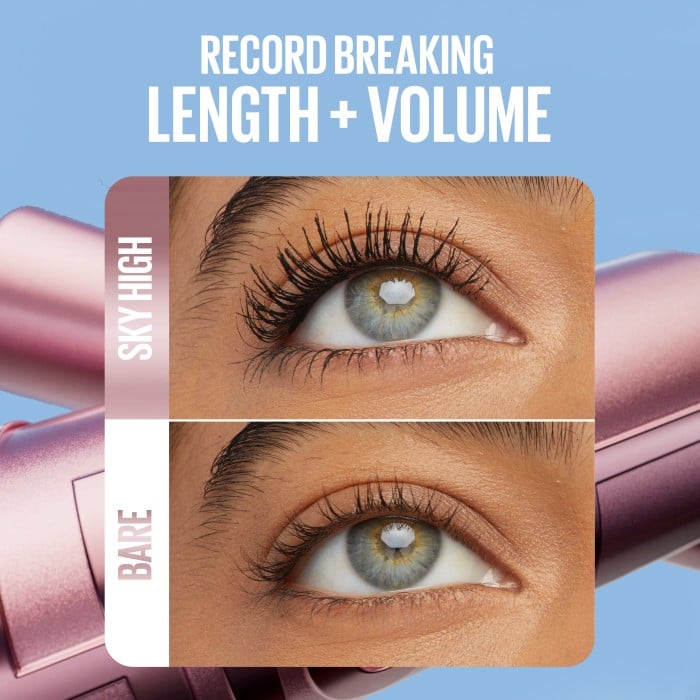 Maybelline Lash Sensational Sky High är en svart vattenfast mascara som ger intensiv volym och fyllighet till fransarna, samtidigt som den separerar dem utan att bilda klumpar.
