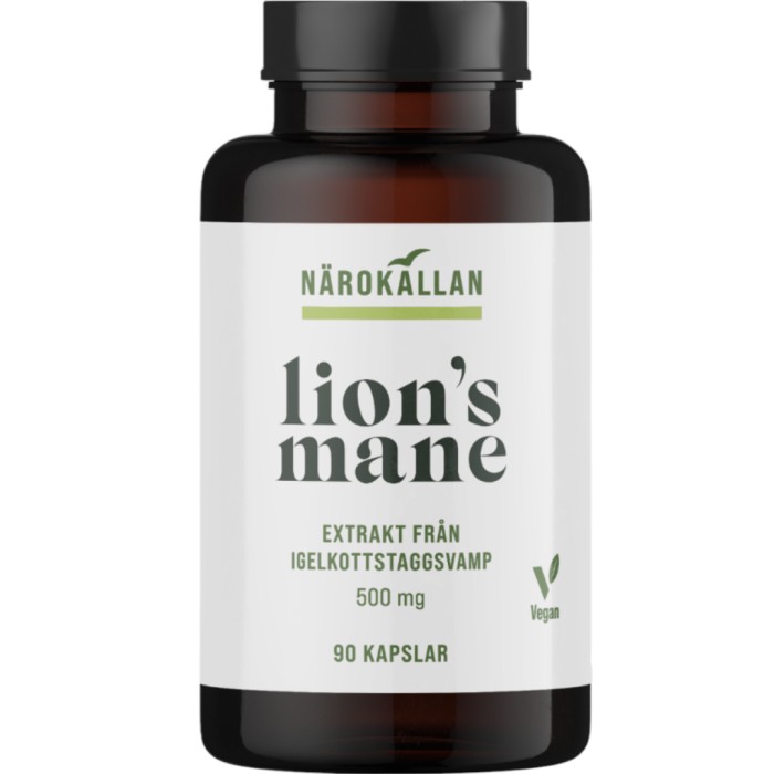 Närokällan Lions Mane är ett kosttillskott med Lion's Mane, en svamp som är populär i Asien och används både till matlagning och som tillskott. Lion's Mane kallas igelkottstaggsvamp på svenska.
