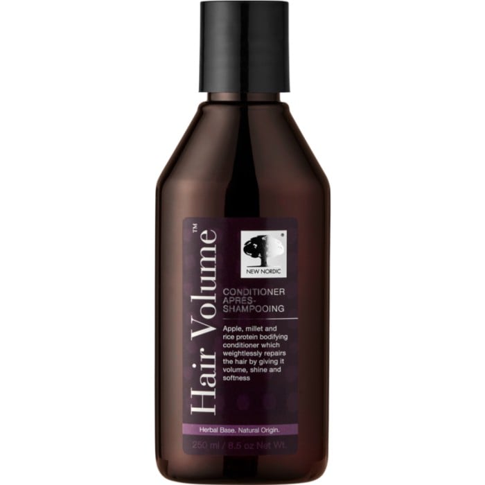 New Nordic Hair Volume Conditioner är ett naturligt, örtbaserat hårbalsam. Balsamet ger näring och fukt till håret och hjälper till att reparera det. New Nordics balsam innehåller bland annat äppleextrakt, hirs och kokos. De naturliga ingredienserna bidrar till ett välmående och mjukt hår, som är lätt att kamma ut. Dessutom skapar balsamet volym och glans.
