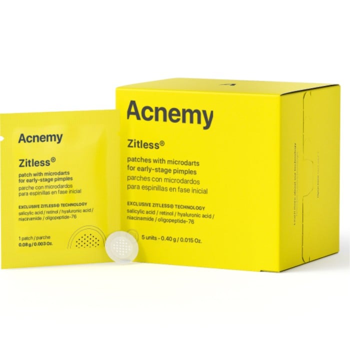 Zitless® Patch från Niche Beauty Lab är ett plåster som med 24 mikroplastpiggar som innehåller en unik blandning av ingredienser som retinol, salicylsyra, hyaluronsyra, niacinamid och oligopeptid-76. När produkten applicerats penetrerar mikropilarna de första lagren av huden och löses upp, släpper de aktiva ingredienserna och behandlar problemet vid roten.