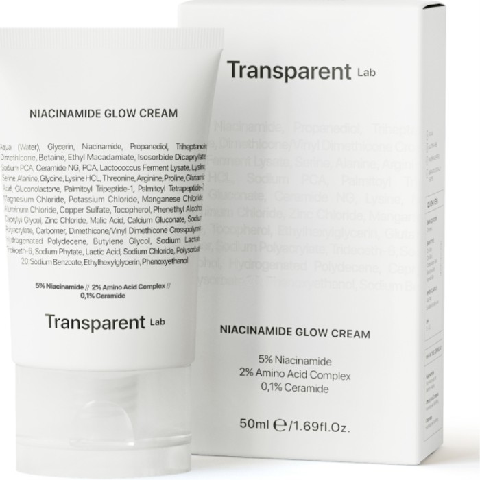 Transparent Lab Niacinamide Glow Cream är en lätt och kraftfull ansiktskräm formulerad med 5% niacinamid, 2% aminosyrakomplex samt 0,1% ceramider.