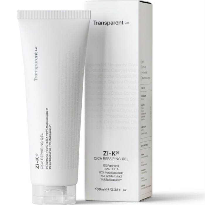 Transparent Lab Zi-K Cica Repairing Gel 100 ml från Niche Beauty Lab är en reparerande gel med CICA som lugnar, reparerar och skyddar hud med försvagad hudbarriär eller lätt irriterad hud. Med sin kombination av återfuktande och reparerande aktiva ingredienser lugnar gelen huden och främjar återhämtning efter applicering.