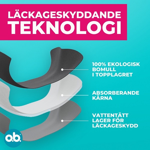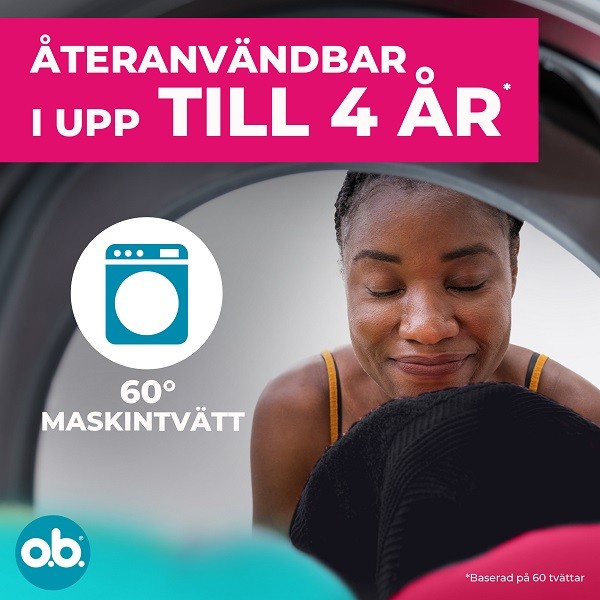 o.b.® Period Pants menstrosa har en läckageskyddande teknologi och ger skydd i upp till 12 timmar. Menstrosan kan tvättas i tvättmaskin i 60°C och återanvändas i upp till 4 år*. (*Baserat på 60 tvättar.) Förpackningen innehåller ett par trosor.