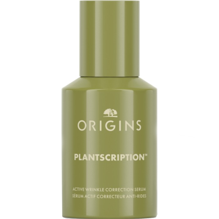 Origins Plantscription Active Wrinkle Correction Serum är ett ansiktsserum framtaget för att tydligt minska de tre mest envisa rynkområdena och öka fastheten i huden. Serumet innehåller de aktiva ingredienserna retinoid, acetyl hexapeptid-8 (peptid), extrakt från anogeissusbark, Laminaria Digitata