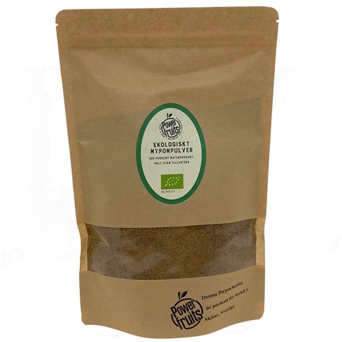 Powerfruits nyponpulver är ett ekologiskt nyponpulver utan tillsatser. Nypon innehåller bland annat vitamin C och E och kostfiber. Powerfruits nyponpulver är tillverkat av bär från nyponrosbuskar i Lesotho. Nyponen torkas och mals.