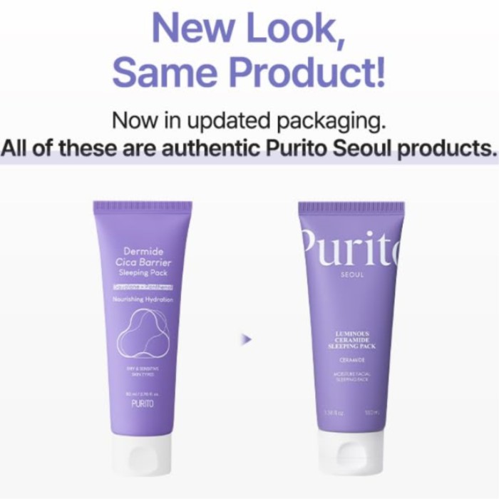 Purito Dermide Cica Barrier Sleeping Pack är en närande sovmask med Centella Asiatica, ceramider och hyaluronsyra som lugnar och stärker huden under natten. Masken verkar återfuktande, minskar rodnad och hjälper huden att återhämta sig medan du sover. Passar för känslig och torr hud som behöver extra vård.