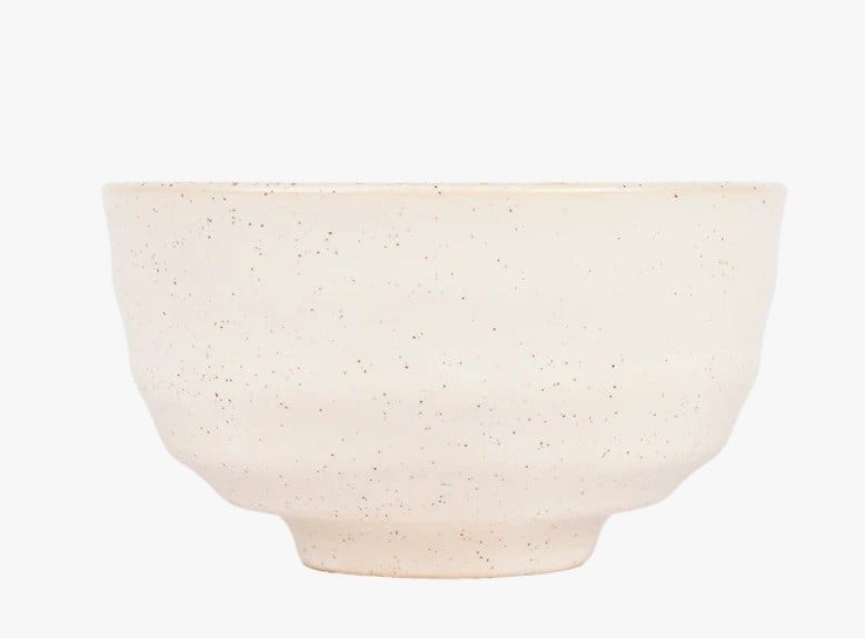 Vitmelerad och glaserad vacker matchaskål från Renée Voltaire - perfekt för både te och latte. Skålen passar perfekt i handen och förgyller din matchastund.