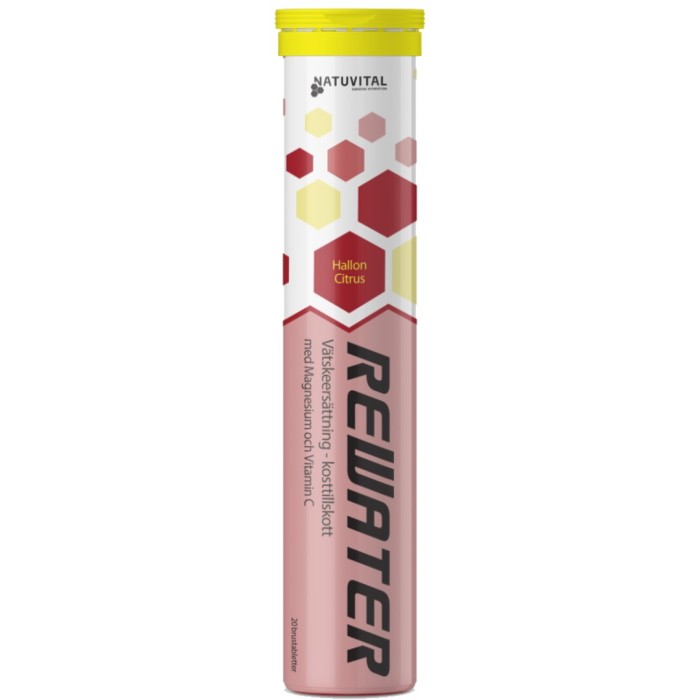 ReWater är en vätskeersättning med elektrolyter, magnesium, vitamin C och vitamin B2 som hjälper kroppen att ta upp vätska när du är uttorkad. ReWater innehåller en kolhydrat-elektrolytlösning som förbättrar vattenupptaget under fysisk träning. Vitamin C bidrar till immunsystemets normala funktion och magnesium bidrar till att minska trötthet och utmattning. Innehåller sötningsmedel.