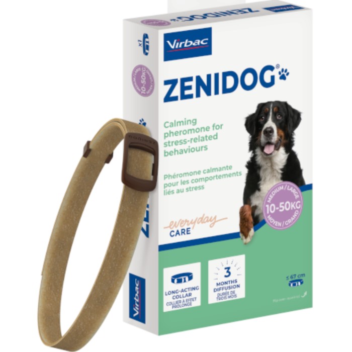 Virbac Zenidog Collar M/L är ett halsband som hjälper till att skapa lugn och trygghet för hunden, speciellt i samband med oväntade och stressiga situationer. Har 3 månaders effekttid.